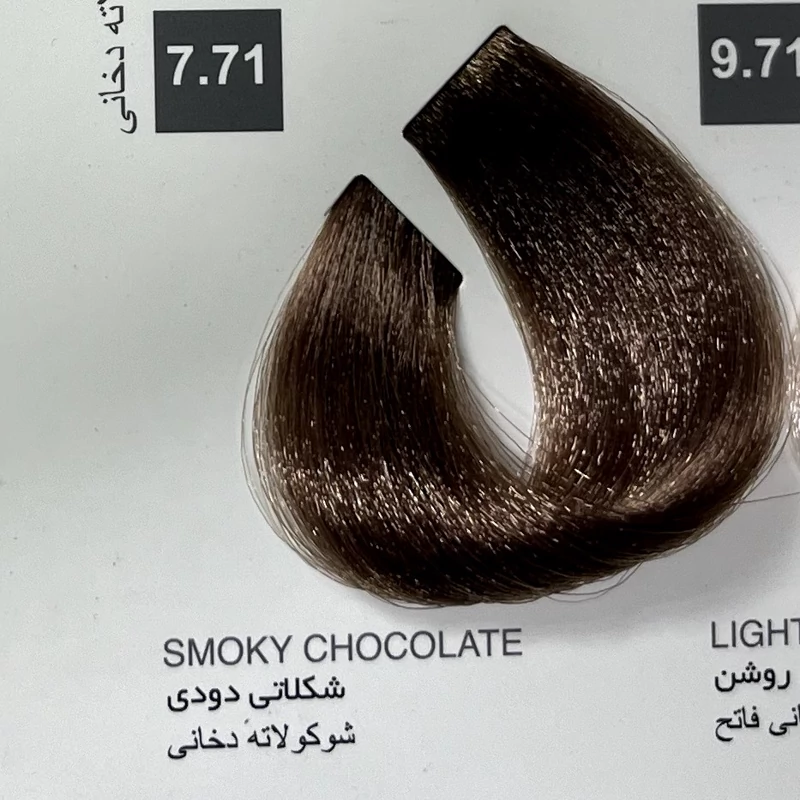 رنگ شکلاتی دودی7.71 ،رنگ مو کاترومر بدون آمونیاک و یک عدد اکسیدان 150 میلی لیتر