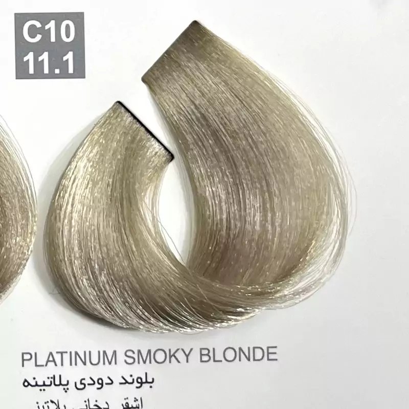 رنگ بلوند دودی پلاتینهC10 ،11.1، رنگ مو کاترومر بدون آمونیاک و یک عدد اکسیدان 150 میلی لیتر
