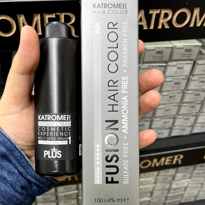 رنگ بلوند شکلاتی روشنW7 ،8.7 ، رنگ مو کاترومر بدون آمونیاک و یک عدد اکسیدان 150 میلی لیتر