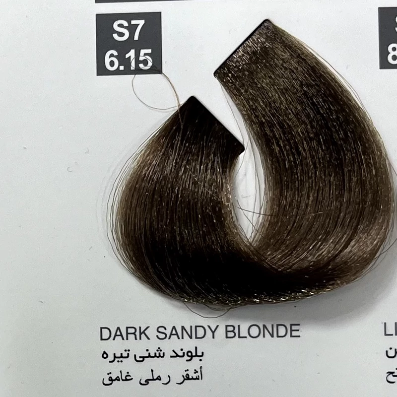 رنگ بلوند شنی تیرهS7 ،6.15 ، رنگ مو کاترومر بدون آمونیاک و یک عدد اکسیدان 150 میلی لیتر