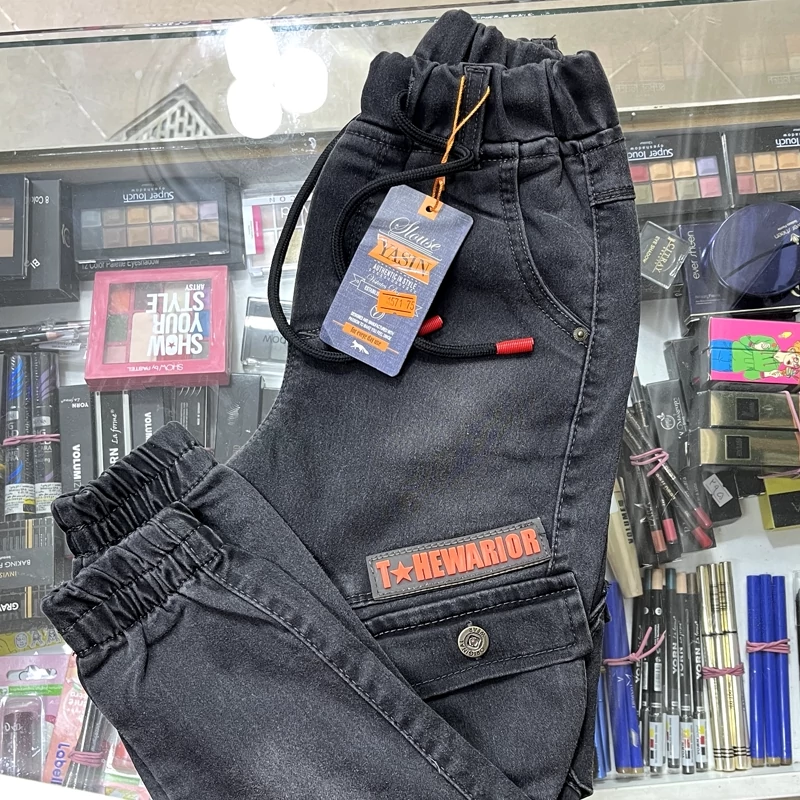 شلوار جین مشکی کمر و مچ کش جنس تمام کش سایز 75 قد 74 فاق 26