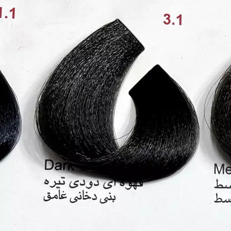 رنگ قهوه ای دودی تیره 3.1 ،رنگ مو کم آمونیاک پیلون و یک عدد اکسیدان