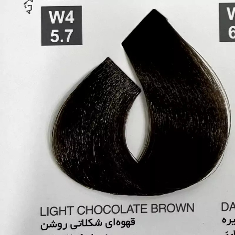 رنگ قهوه ای شکلاتی روشن W4 ،5.7 ، رنگ مو کاترومر بدون آمونیاک و یک عدد اکسیدان 150 میلی لیتر