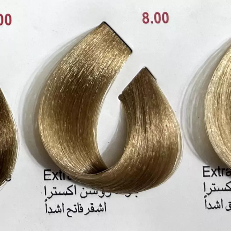 رنگ بلوند روشن اکسترا 8.00 ،رنگ مو کم آمونیاک پیلون و یک عدد اکسیدان
