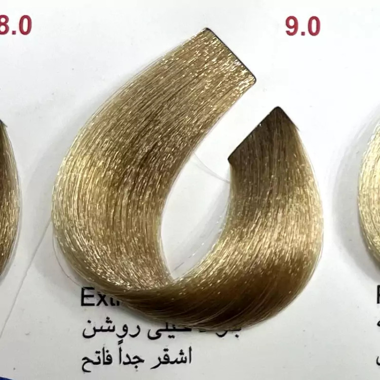 رنگ بلوند خیلی روشن9.0 ،رنگ مو کم آمونیاک پیلون و یک عدد اکسیدان