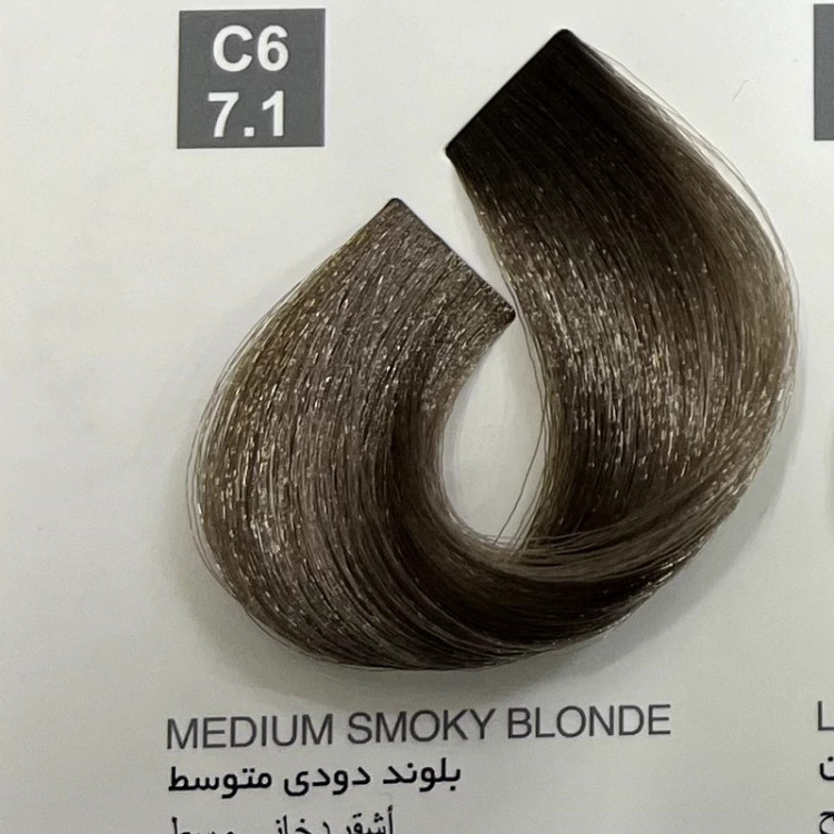 رنگ بلوند دودی متوسطC6 ،7.1 ، رنگ مو کاترومر بدون آمونیاک و یک عدد اکسیدان 150 میلی لیتر