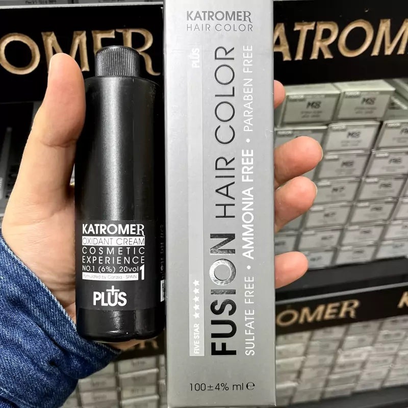 رنگ بلوند خاکستری روشنA7 ،8.2 رنگ مو کاترومر بدون آمونیاک و یک عدد اکسیدان 150 میلی لیتر