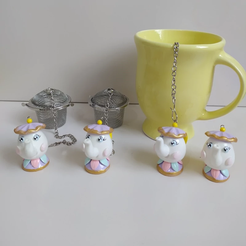 آویز صافی چای و دمنوش طرح قوری دیو و دلبر یک عددی بدون صافی استیل