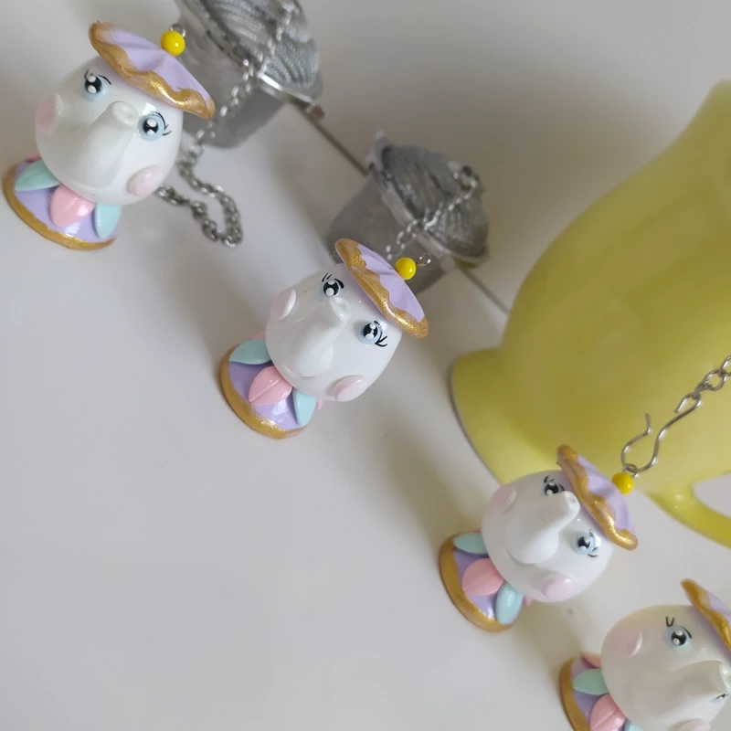 آویز صافی چای و دمنوش طرح قوری دیو و دلبر یک عددی بدون صافی استیل