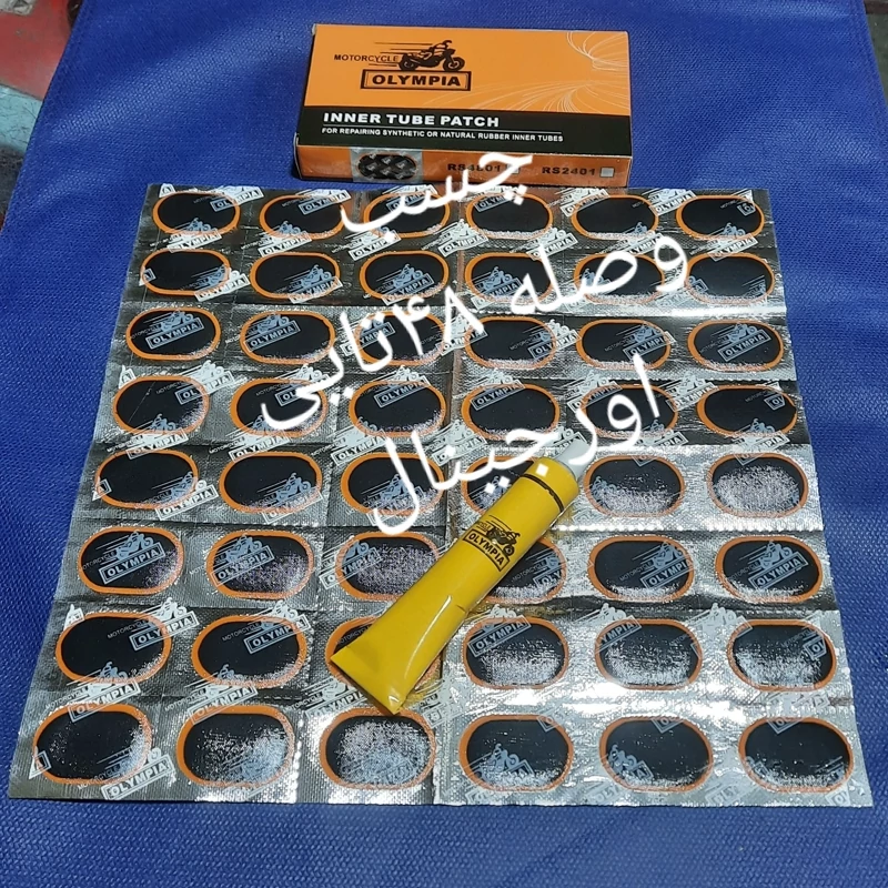 48 عدد وصله پهن تاریخ جدید جهت پنچرگیری دوچرخه. موتورسیکلت. خودرو .و..... برند المپیا با چسبندگی عالی همراه با چسب