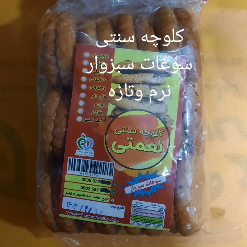 دارای طعم های مختلف تاریخ تولید به روز نرم وتازه از بهترین مواد تولید شده 3ماه تاریخ انقضا طعم عالی ومشتری همیشه این کلوچه میشین بهداشتی واستاندارد