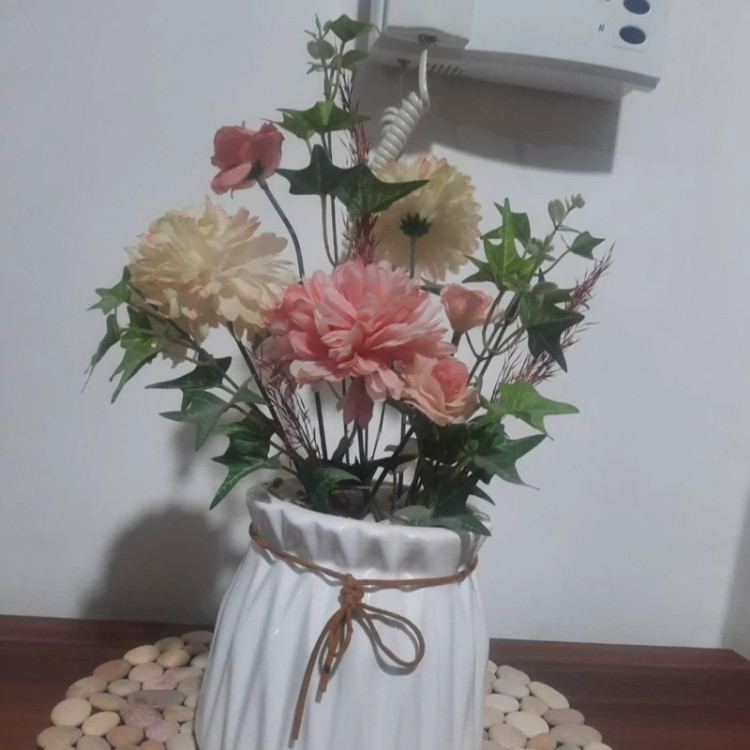 گل مصنوعی همراه با گلدان تزینی وخیلی زیبا