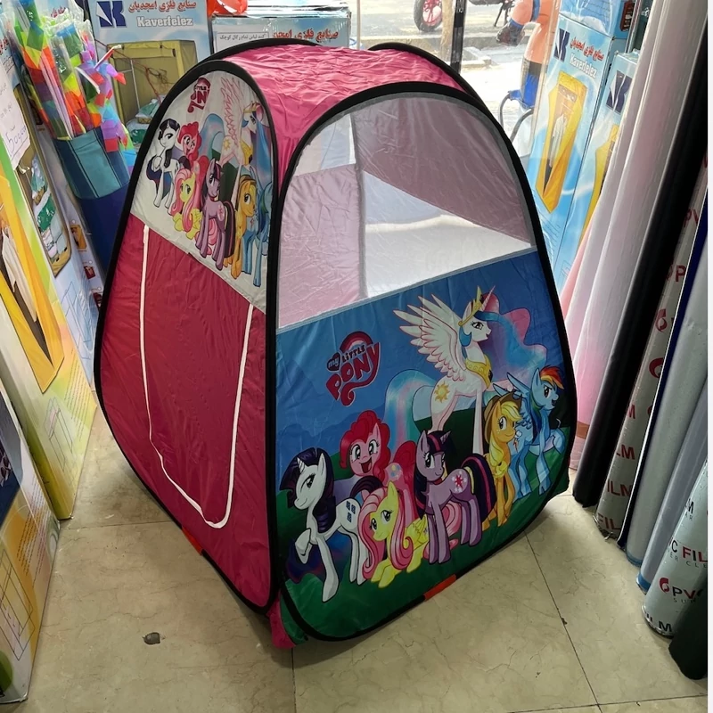 داشتن یک چادر بازی برای کودکان القاء کننده حس استقلال است و به آنها این امکان را می دهد که ساعتها با دوستان و یا اسباب بازی های خود در گوشه ای بدون ایجاد مزاحمت برای سایر اعضای خانواده سرگرم شوند چادر بازی کودک طرح پونی ( پونی ) محصولی است تولید شده با پارچه با کیفیت پشت نقره ، فنرهای قوی ، ستون های فایبرگلاس ، کف ضخیم و تا حدودی ضد آب که با افتخار توسط یک تولیدی ایرانی با بهترین متریال عرضه می گردد. طراحی و چاپ دیجیتال و منحصر به فرد این محصول که آن را نسبت به محصولات مشابه در بازار متمایز می کند. چادر بچه طرح پونی علاوه بر ظاهری کودک پسند وسیله ای کارآمد برای جمع آوری اسباب بازی ها توسط والدین است. این محصول با وزن سبک ، حمل آسان و کاور دایره ای شکل 40 سانتی متری به راحتی باز و بسته می شود و با ارتفاع 110 سانتی متر و طول و عرض 95 در 95 سانتی متر در گوشه ای از منزل ، مهد کودک، در مسافرت ها، کنار ساحل و ... قابل استفاد است. چادر بچه طرح کیتی با ظاهری زیبا و چشم نواز دارای پنجره توری تهویه ای مناسب برای فرزند دلبندتان بهمراه دارد و زیپ 150 سانتی متری با کیفیت با سرزیپ پلاستیکی رنگی و بی خطر ، این امکان را به کودک خواهد داد تا درب منزل شخصی خود را براحتی ببندد و به والدین کمک کند تا لوازم و اسباب بازی های بچه ها را در آن جمع آوری کنند. این محصول قبل از ارسال از لحاظ پارگی ، چاپ صحیح ، سلامت فنرها و زیپ ها مجدداً کنترل خواهند شد