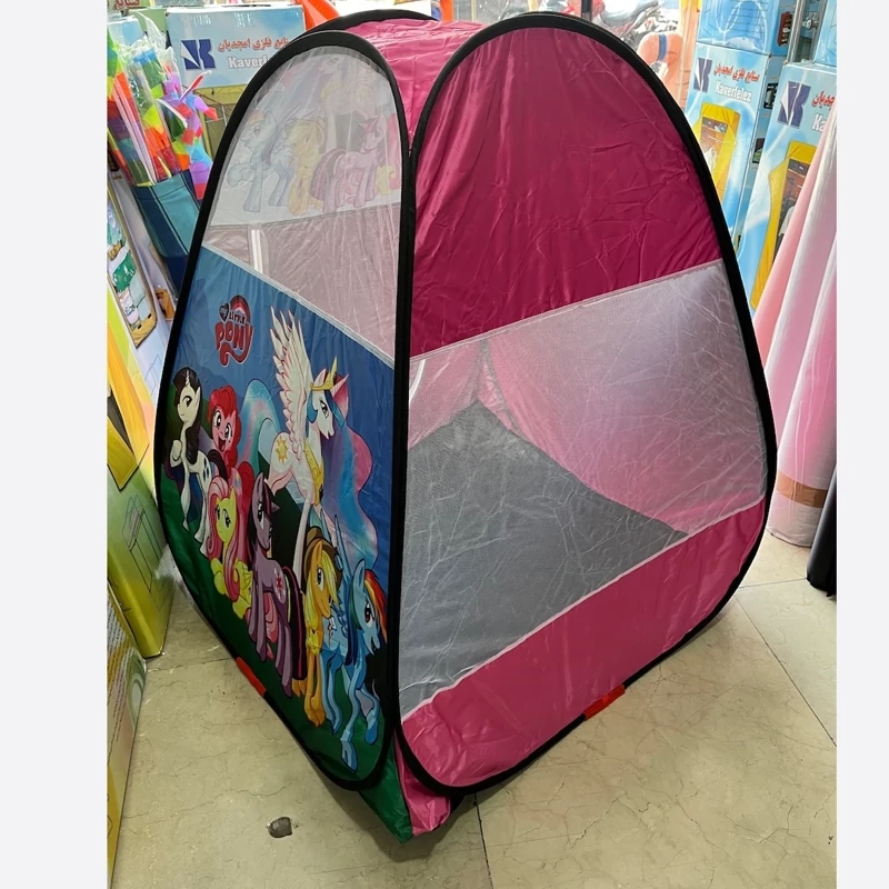 داشتن یک چادر بازی برای کودکان القاء کننده حس استقلال است و به آنها این امکان را می دهد که ساعتها با دوستان و یا اسباب بازی های خود در گوشه ای بدون ایجاد مزاحمت برای سایر اعضای خانواده سرگرم شوند چادر بازی کودک طرح پونی ( پونی ) محصولی است تولید شده با پارچه با کیفیت پشت نقره ، فنرهای قوی ، ستون های فایبرگلاس ، کف ضخیم و تا حدودی ضد آب که با افتخار توسط یک تولیدی ایرانی با بهترین متریال عرضه می گردد. طراحی و چاپ دیجیتال و منحصر به فرد این محصول که آن را نسبت به محصولات مشابه در بازار متمایز می کند. چادر بچه طرح پونی علاوه بر ظاهری کودک پسند وسیله ای کارآمد برای جمع آوری اسباب بازی ها توسط والدین است. این محصول با وزن سبک ، حمل آسان و کاور دایره ای شکل 40 سانتی متری به راحتی باز و بسته می شود و با ارتفاع 110 سانتی متر و طول و عرض 95 در 95 سانتی متر در گوشه ای از منزل ، مهد کودک، در مسافرت ها، کنار ساحل و ... قابل استفاد است. چادر بچه طرح کیتی با ظاهری زیبا و چشم نواز دارای پنجره توری تهویه ای مناسب برای فرزند دلبندتان بهمراه دارد و زیپ 150 سانتی متری با کیفیت با سرزیپ پلاستیکی رنگی و بی خطر ، این امکان را به کودک خواهد داد تا درب منزل شخصی خود را براحتی ببندد و به والدین کمک کند تا لوازم و اسباب بازی های بچه ها را در آن جمع آوری کنند. این محصول قبل از ارسال از لحاظ پارگی ، چاپ صحیح ، سلامت فنرها و زیپ ها مجدداً کنترل خواهند شد