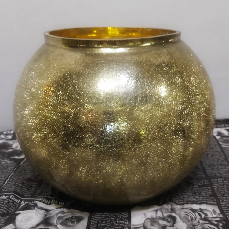 گلدان شیشه ای آبگز طلایی طرح کروی بزرگ عالیجناب در ارتفاع 22سانت