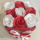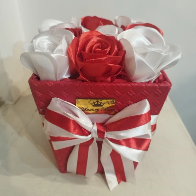 باکس هدیه گل رز مصنوعی سفید و قرمز
