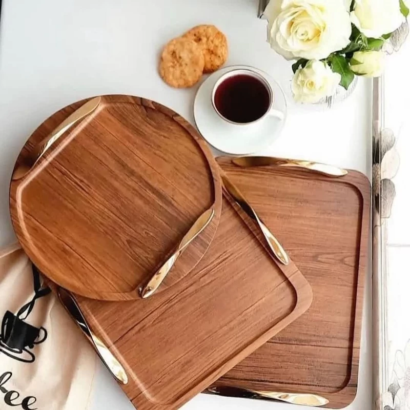 سینی چوبی وکیوم دسته طلایی گرد: قطر 27 سانت مستطیل: 24×32 سانت مربع: 27×27 سانت هرعدد فقط و فقط 179 تومان