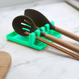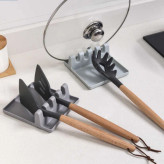 استند دوکاره زیر قاشقی و درب قابلمه ، محصولی با طراحی خلاقانه ، مدرن و کاربردی جهت استفاده کنار انواع اجاق گاز می باشد . این استند از جنس پلاستیک مقاوم و با کیفیت تولید شده و قابلیت استفاده به شکل های مختلف را دارد . استند کفگیر و ملاقه متشکل از یک کفی است که بر روی خود یک استند با چهار شیار دارد ، از شیارها می توان برای قراردادن قاشق ، کفگیر و ملاقه استفاده نمود . وجود کفی که اطراف آن را لبه ای با ارتفاع کم در بر گرفته ، در زیر شیارها مانع از ریختن مواد و یا مایع غذا از طریق قاشق و کفگیر بر روی سطح می شود . از سویی دیگر می توان کفگیر و ملاقه را بر روی کفی به صورت مجزا قرار داد . علاوه بر استند کفگیر و ملاقه ، از این محصول می توان به عنوان یک نگهدارنده درب قابلمه برای درب های کوچک نیز در صورت نیاز استفاده نمود . استند جا قاشقی به گونه ای بر روی سطح کفی قرار گرفته که از یک طرف با لبه دور آن فاصله اندکی دارد ، فاصله ای که مناسب برای قرارگیری درب قابلمه به صورت ایستاده می باشد . وجود زیر قاشقی ، کنار گاز یا حتی روی کابینت مانع از کثیف شدن سطح زیرین یا آلوده شدن قاشق و کفگیر می شود و از سویی دیگر دسترسی سریع تر به آنها در موقع نیاز را میسر می کند . جا قاشقی کنار گاز در رنگ های متنوع و زیبا ارائه و از جمله لوازم آشپزخانه مدرن محسوب می شود .