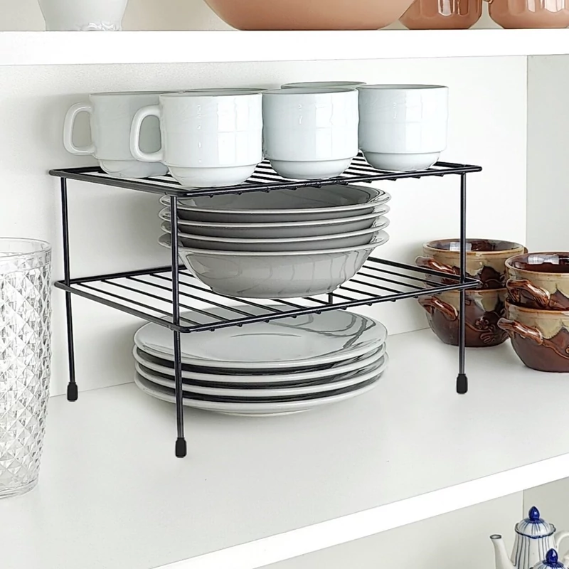 راف دو طبقه کابینت ، یک نظم دهنده فلزی با روکش لعاب سفید رنگ و البته ضخیم که می تواند به لوازم و وسایل داخل کابینت شما نظم بخشیده و امکان دسترسی آسان به آنها را فراهم کند . این راف فلزی دارای دو طبقه مجزا از یکدیگر می باشد که مناسب برای جای گیری درون و روی کابینت جهت قرار دادن لوازم و وسایل مختلف به صورت تفکیک شده با ایجاد امکان استفاده حداکثری از فضای داخل کابینت طراحی و ساخته شده . چهار پایه راف با استفاده از روکش محافظ پلاستیکی پوشش داده شده اند تا در صورت حرکت بر روی سطح کابینت مانع از ایجاد خراشیدگی آن شود . با استفاده از راف فلزی دوطبقه می توان کالاهای حساس که در حالت معمول قابلیت قرارگیری بر روی یکدیگر را ندارند نظیر لیوان و فنجان را به صورت مجزا از یکدیگر داخل یک کابینت جای داد و این یعنی بهره برداری بهینه از فضای موجود و کاهش محدودیت در کنار حفظ سلامت وسایل و ظروف .