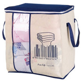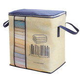 بقچه لباس زیپ دار ، محصولی زیبا و در عین حال کاربردی جهت استفاده در منازل است . این بقچه از جنس پارچه مقاوم و با کیفیت تولید شده که ابعادی معادل 29 * 45 * 51 سانتی متر و ظاهری مکعبی شکل دارد . درب باکس با استفاده از یک زیپ به سادگی باز و بسته می شود و دستگیره های تعبیه شده در دو طرف بقچه لباس نیز امکان حمل ساده تر آن را برای شما محیا خواهد کرد . قسمتی از جلوی باکس نظم دهنده کمد لباس را پوشش پلاستیکی شفافی تشکیل می دهد که امکان مشاهده محتویات درون محصول را جهت اطلاع از موجودی داخل آن بدون نیاز به باز کردن درب و جست و جو برای شما محیا می کند . از بقچه لباس پارچه ای می توان برای نگهداری لباس های مختلف از جمله لباس عروس ، پتو ، تشک ، بالشت های کوچک ، حوله ها و وسایل مختلف دیگر داخل اتاق ، کمد و ... استفاده نمود .