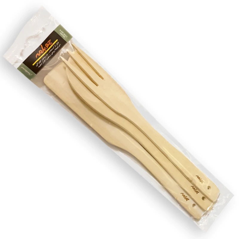 ست کفگیر ملاقه چوبی سپیدار ، شامل سه ابزار پر کاربرد آشپزخانه است . محصولی با طراحی مدرن ، ظاهری زیبا و عملکردی کاملاً کاربردی که می توان از آن برای آشپزی با انواع ظروف دارای لایه های حساس نظیر تفلن استفاده نمود . این ست ، سه محصول کفگیر ، قاشق و چنگال را شامل می شود که از جنس چوب صنوبر (سپیدار) با کیفیت تولید شده اند . قاشق چوبی دارای دو لبه منحنی شکل و صاف با زاویه 90 درجه می باشد که امکان استفاده از آن برای ظروف مختلف اعم از گرد و مستطیل شکل را فراهم می کند . کفگیر نیز دارای صفحه صاف با لبه باریک شده می باشد که علاوه بر کارکرد معمول ، قابلیت استفاده از آن را برای سرخ کردن مواد غذایی در کنار چنگال فراهم می کند . زیبایی ظاهری محصولات امکان استفاده از آنها برای سرو برخی از غذاها و یا دسرها نظیر سالاد را نیز به وجود آورده است . مقاومت ، قابلیت شست و شو و امکان حمل و جابه جایی آسان برای استفاده در شرایط مختلف از جمله سفر و کمپینگ را نیز به دیگر ویژگی های ست کفگیر قاشق چوبی چوبلمه نیز اضافه کنید .