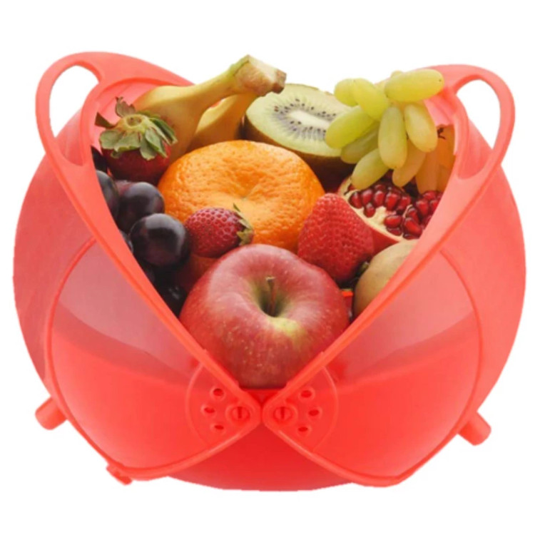 سبد میوه دوطرفه آبکش دار ، محصولی تولید شده از جنس پلاستیک فشرده با طراحی ظاهری زیبا و عملکردی کاربردی تر از نمونه های مشابه می باشد . این محصول شامل یک سبد آبکش دار و دو کفی دوار که در کنار هم یک نیم دایره را تشکیل می دهند ، است . محفظه اصلی یک لگن با کفی آبکش دار می باشد که از آن می توان برای شست و شو و آبکشی مواد غذایی نظیر میوه و سبزیجات استفاده نمود . با کشیدن دستگیره ها به سمت بالا شاهد بیرون آمدن نیم کره دواری خواهید بود که در زیر سبد تعبیه شده است ، به گونه ای که محتویات داخل سبد به صورت کامل داخل محفظه پوشش داده می شوند . در این حالت دستگیره ها در بالاترین قسمت سبد برای حمل آسان ظرف قرار خواهند گرفت . لگن آبکش دار دو طرفه در رنگ های متنوع و زیبا جهت استفاده در آشپزخانه منزل ، پیک نیک ، سفر و ... ، برای نگهداری و حمل آسان مواد غذایی نظیر میوه و سبزیجات مناسب است .