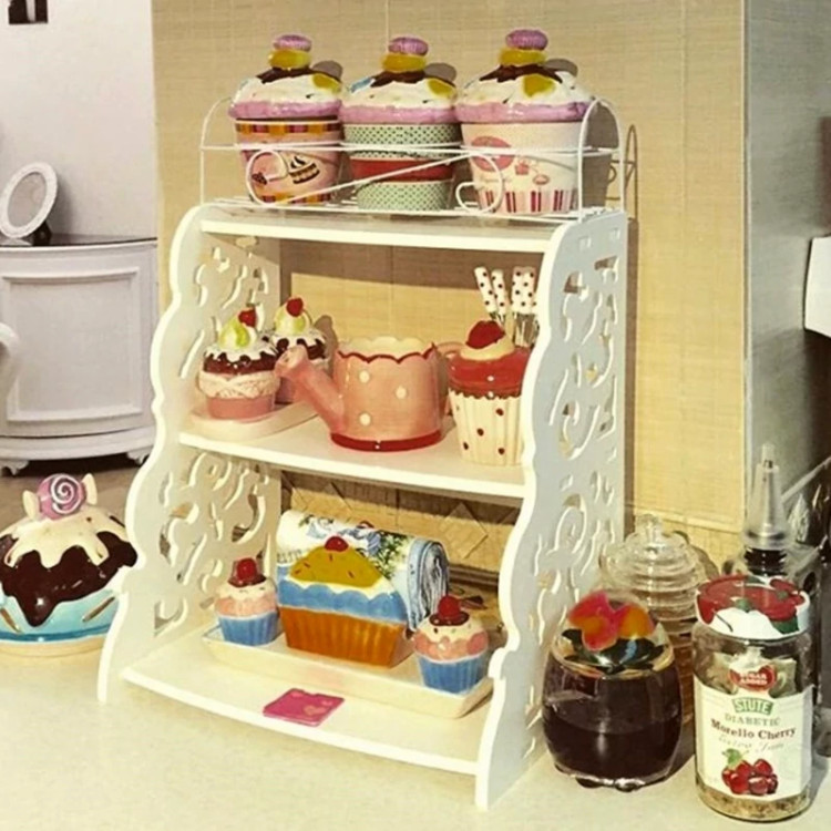 شلف چوبی جا ادویه سه طبقه رومیزی مناسب برای نگهداری وسایل آشپزخانه ، تهیه شده از جنس PVC قابل شستشو. از شلف جا ادویه می توانید در مصارف دیگر نیز استفاده کنید ، مثلا لوازم دکوری و تزئینی خود را درون آن قرار دهید. همچنین این شلف به شلف پاسماوری نیز معروف است ، تا بتوانید چایی ، قند ، شکر و حتی لیوان و استکان را درون آن نگهداری کنید.