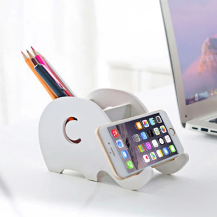 شلف رومیزی طرح فیل ، محصولی با طراحی نوین ، زیبا و فانتزی است . این شلف دارای ظاهری مشابه به یک فیل می باشد . شلف رومیزی از جنس پی وی سی تولید شده که مقاوم در برابر رطوبت و آب است و شما می توانید به راحتی آن را تمیز کنید . نوع طراحی شلف به گونه ای است که قادر خواهید بود از آن به عنوان استند موبایل و تبلت ، نگهدارنده لوازم التحریر نظیر خودکار و مداد استفاده نمایید . شما می توانید از شلف و باکس طرح فیل ، بر روی میز تحریر ، میز کار و ... استفاده نمایید تا علاوه بر ایجاد جلوه ای زیبا و متفاوت ، نظمی دوباره بر روی میز کار شما به وجود آورد .