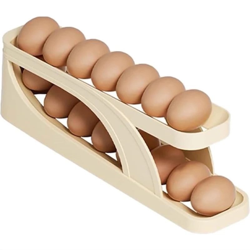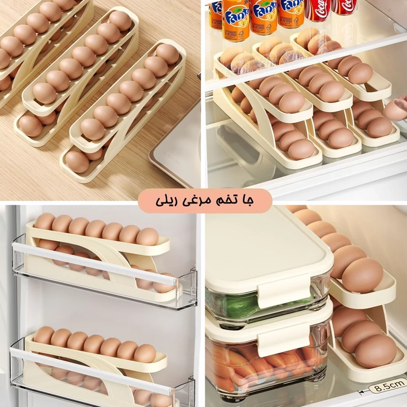 جا تخم مرغی ریلی ، محصولی جدید با طراحی ظاهری ساده ، اما بسیار کاربردی برای نگهداری تخم مرغ ها به صورت منظم با قابلیت دسترسی آسان و البته اشغال کمترین فضای ممکن می باشد . این کالا تولید شده از جنس پلاستیک مقاوم و باکیفیت است که قابلیت شستشو و تمیز کردن آسان را نیز دارد . استند تخم مرغ ریلی به صورت دو طبقه و باریک طراحی شده ، به طوری که تخم مرغ ها به شکل ردیفی پشت سر هم داخل طبقات جای خواهند گرفت ، بدین ترتیب فضای بسیار کمتری را اشغال خواهند کرد و امکان استفاده حداکثری از فضای موجود را فراهم می آورد . طبقه دوم دارای مقداری شیب به سمت پشت بوده ، بخشی که یک خروجی به داخل طبقه پایین دارد ، بدین ترتیب در هر بار برداشتن تخم مرغ ، ردیف بالا به سمت پایین به شکل قطاری حرکت می کنند تا خلاء فضایی ایجاد شده را پر کرده و به راحتی در دسترس کاربر برای استفاده قرار گیرند . داخل یخچال ، روی کابینت ، کنار اجاق گاز و یا هر جای دیگری که نیاز داشته باشید می توانید از جا تخم مرغی دو طبقه برای نگهداری و استفاده ساده تر از تخم مرغ ها بهره بگیرید .