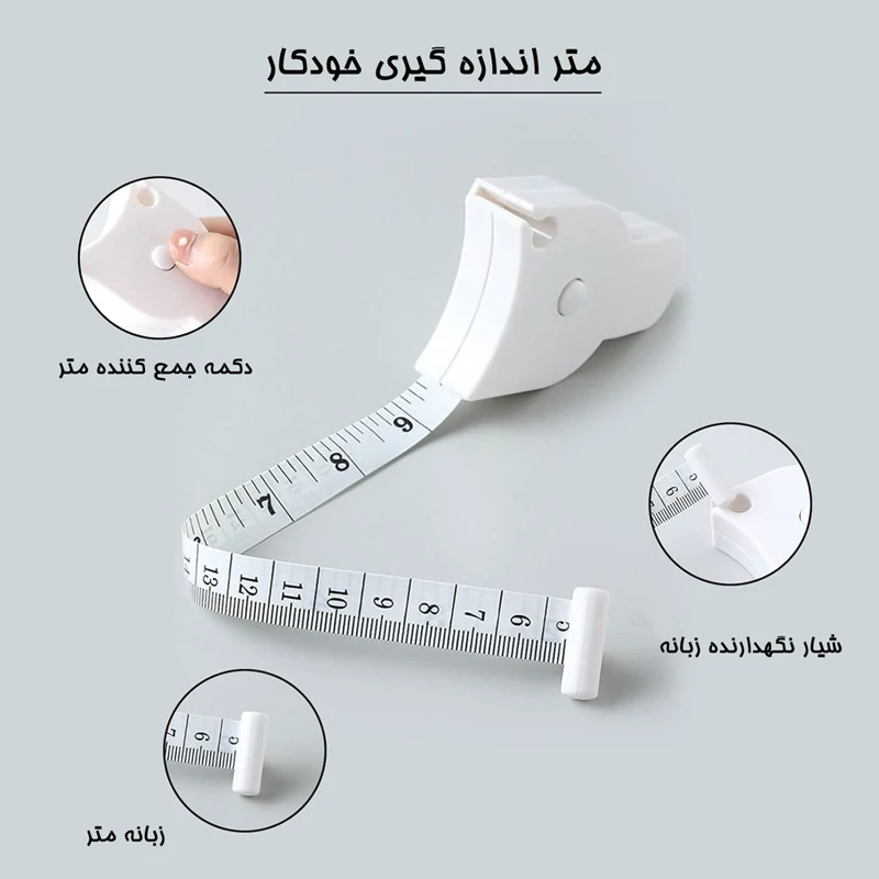 متر اندازه گیری خودکار ، نمونه ای جدید با ظاهری متفاوت و البته عملکردی بسیار کاربردی به ویژه در شرایط خاص می باشد . این متر دارای طول 152 سانتر متر و تولید شده از جنس پلاستیک فشرده است که در عین سبکی ، مقاومت مناسبی دارد . به این خصوصیات باید ابعاد مناسب محصول برای حمل و جابه جایی آسان را نیز اضافه کرد . طراحی متر خودکار همانند یک دستگیره می باشد که دارای دو لبه است ، لبه هایی که بر روی یک از آنها سری متر با زبانه استوانه ای شکل قرار دارد . شما این امکان را دارید که از متر به حالت معمول استفاده کنید کافی است نازل روی دسته را فشرده و متر را بکشید ، اما در صورتی که بخواهید دور یک وسیله را اندازه بزنید می توانید متر را به دور قسمت مورد نظر خود گرفته و زبانه را داخل شیار تعبیه شده بر روی لبه دیگر کالا قرار دهید ، حالا نازل دکمه ای شکل روی دسته را فشار دهید ، متر به سرعت جمع شده و با قسمت مورد نظر اصطلاحاً فیت می شود ، پس از رها کردن نازل متر ثابت خواهد شد و می توانید به سادگی عدد روی آن را ببینید . از این ویژگی می توان برای موارد زیادی نظیر اندازه زدن قسمت های مختلف بدن مانند دور سر ، بازو و شکم و یا هر چیز دیگری که نیاز به دانستن ابعاد آن دارید استفاده کنید .