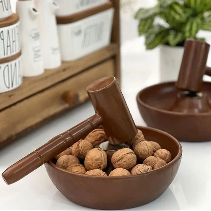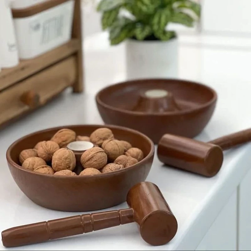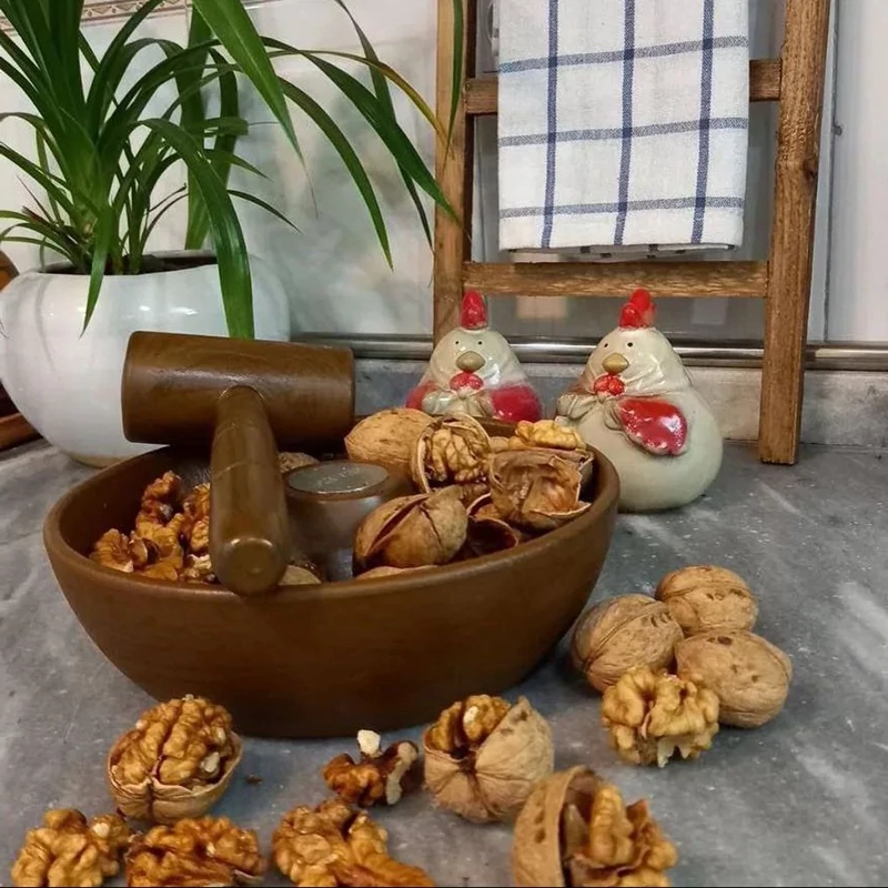 ظرف گردو شکن همراه با چکش ، نمونه ای جدید از ظروف کاربردی آشپزخانه است . موضوعی که در نگاه اول بی شک نظر بیننده را جلب خواهد کرد ، نوع طراحی محصول می باشد که ظاهری منحصر به فرد و البته بسیار خاصی دارد ، بنابراین شاید کمتر نمونه ای مشابه و یا حتی نزدیک به آن را دیده باشید . ظرف شکستن گردو ، کاسه ای شکل است با این تفاوت که در قسمت میانی خود سکوی کوچکی با کفی فلزی برای قرار گرفتن گردو دارد ، کافی است گردو را در این قسمت قرار دهید و با استفاده از چکش چوبی همراه کالا به آن ضربه بزنید و گردو را بشکنید ، پوست گردو بدون پخش شدن داخل ظرف خواهد ریخت و می توانید مغز آن را به آسانی جدا کنید . این قابلیت نیز برای گردو شکن طرح چوب وجود دارد که از آن برای سرو برخی تنقلات از جمله آجیل استفاده کنید . علاوه بر شکستن پوست گردو امکان استفاده از محصول برای شکستن پوست فندق و بادام نیز وجود دارد .