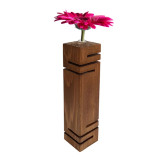 گلدان چوبی مدل ستون ، حس یک تجربه متفاوت با طراحی جدید و منحصر به فرد خصوصیتی غیر قابل توصیف برای این محصول است . گلدان دکوری ستون از جنس چوب مرغوب و با کیفیت تولید شده که ماهیت آن رومیزی و قابل استفاده برای تزیین روی میز در منزل ، محیط های اداری ، کاری ، کافی شاپ ها و ... می باشد . ظاهر گلدان شبیه به یک مکعب مستطیل ایستاده (ستون) است که شیارهای ایجاد شده بر روی تنه آن زیبایی جالب توجهی به محصول بخشیده . در میان این مکعب از بالا حفره ای دایره ای شکل وجود دارد که درون خود یک محفظه استوانه ای شفاف با قابلیت جدا شدن از گلدان را جای داده . محفظه ای که می تواند مقداری آب درون خود حفظ کند و یک یا دو شاخه گل بسته به ابعاد را درونش جای داد . گلدان رومیزی چوبی طرح ستون ارائه شده در رنگ بندی قهوه ای ، قهوه ای تیره و کرم می باشد که بسته به سلیقه و تم رنگ محیط مورد نظر خود می توانید از میان آنها انتخاب و استفاده نمایید .