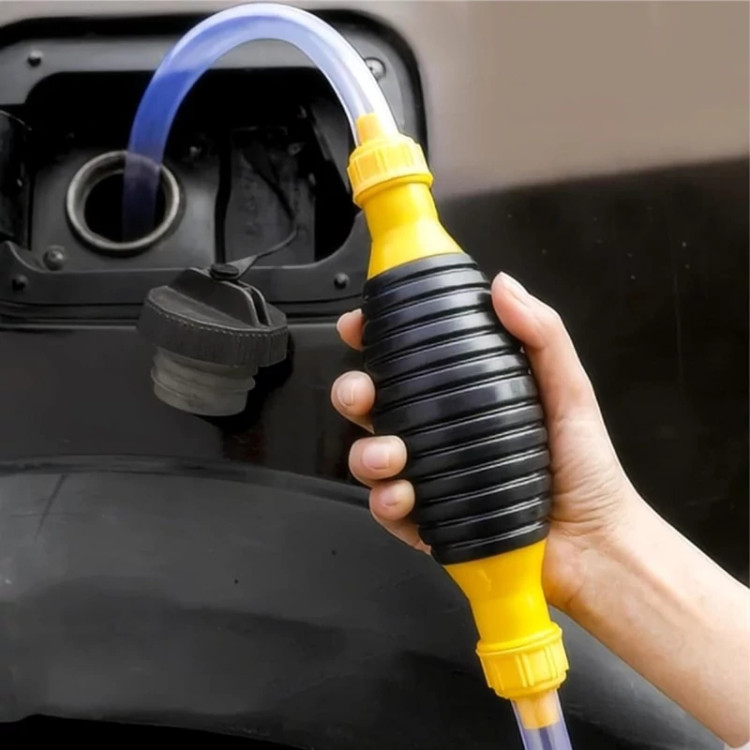 پمپ دستی مکنده سوخت و مایعات ، نمونه ای جدید از پمپ های دستی است که در گذشته بسیار مورد استفاده قرار می گرفتند به ویژه برای مکش بنزین از داخل محفظه و یا باک . اما این بار کمی متفاوت تر از قبل طراحی شده ، شمایل کالا همانند یک استوانه است که از قسمت میانه بزرگتر شده و در دو طرف که ورودی و خروجی آن می باشند باریک تر . بخش میانی بر خلاق قسمت های دیگر از جنس پلاستیک فشرده با انعطاف پذیری لازم می باشد تا بتوانید به سادگی عمل پمپاژ را انجام دهید . بر روی بدنه مسیر حرکت صحیح مایع پمپاژ شده با استفاده از فلش هایی مشخص شده ، بنابراین به هنگام استفاده به این فلش ها دقت کنید . شلنگ باریک متناسب با سری ها را به پمپ متصل نمایید و سپس مقداری قسمت میانی را فشرده و رها کنید تا مایع به داخل شلنگ وارد و از قسمت خروجی بیرون آید ، به همین سادگی می توانید بنزین و گازوئیل را از داخل باک و یا مخزن به بیرون پمپاژ نمایید و یا حتی از آن برای تخلیه آب درون آکواریوم و مواردی مشابه بهره ببرید . ابعاد و حجم مناسب کالا امکان نگهداری در کمترین فضای ممکن و همچنین جابه جایی آسان برای دسترسی ساده تر نظیر داخل خودرو را برای کاربر فراهم آورده .