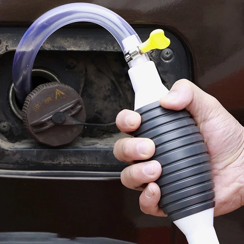 پمپ دستی مکنده سوخت و مایعات ، نمونه ای جدید از پمپ های دستی است که در گذشته بسیار مورد استفاده قرار می گرفتند به ویژه برای مکش بنزین از داخل محفظه و یا باک . اما این بار کمی متفاوت تر از قبل طراحی شده ، شمایل کالا همانند یک استوانه است که از قسمت میانه بزرگتر شده و در دو طرف که ورودی و خروجی آن می باشند باریک تر . بخش میانی بر خلاق قسمت های دیگر از جنس پلاستیک فشرده با انعطاف پذیری لازم می باشد تا بتوانید به سادگی عمل پمپاژ را انجام دهید . بر روی بدنه مسیر حرکت صحیح مایع پمپاژ شده با استفاده از فلش هایی مشخص شده ، بنابراین به هنگام استفاده به این فلش ها دقت کنید . شلنگ باریک متناسب با سری ها را به پمپ متصل نمایید و سپس مقداری قسمت میانی را فشرده و رها کنید تا مایع به داخل شلنگ وارد و از قسمت خروجی بیرون آید ، به همین سادگی می توانید بنزین و گازوئیل را از داخل باک و یا مخزن به بیرون پمپاژ نمایید و یا حتی از آن برای تخلیه آب درون آکواریوم و مواردی مشابه بهره ببرید . ابعاد و حجم مناسب کالا امکان نگهداری در کمترین فضای ممکن و همچنین جابه جایی آسان برای دسترسی ساده تر نظیر داخل خودرو را برای کاربر فراهم آورده .