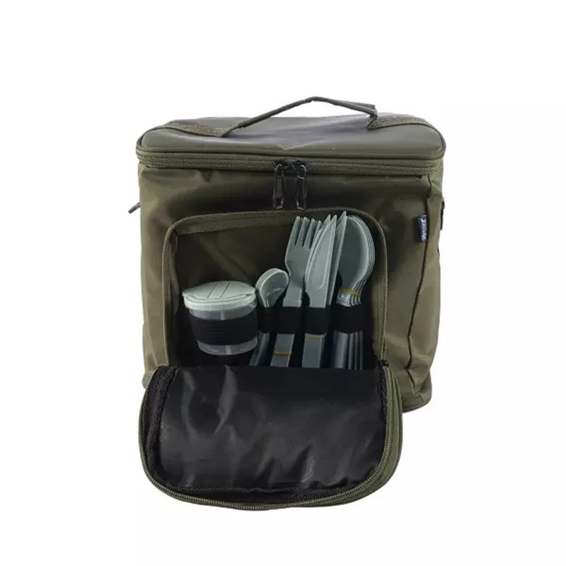 محتویات داخل ساک شامل : یک عدد فلاسک 1 لیتری ، قاشق ، چنگال و کفگیر آشپزی ، دو عدد باکس که هر کدام درون خود ظروف کوچکتری برای استفاده مجزا و یا تقسیم فضای داخلی ظرف را دارند ، 4 عدد بشقاب ، 4 عدد کاسه ، 4 عدد پیش دستی ، 4 عدد قاشق غذاخوری ، 4 عدد چنگال ، 4 عدد کارد میوه خوری ، 4 عدد قاشق چای خوری ، 4 عدد لیوان به همراه نمکدان دوقلو ، بادبزن و تخته گوشت