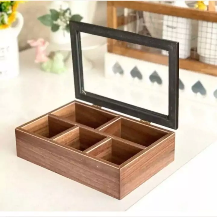 📌باکس تی بگ چوبی 📏سایز 25*17 - ارتفاع 8 سانت 🌈تک رنگ 🔸ساخت🇮🇷 ❇️ جنس چوب - شیشه