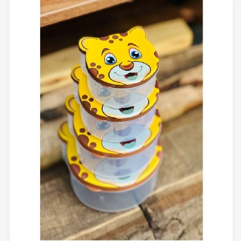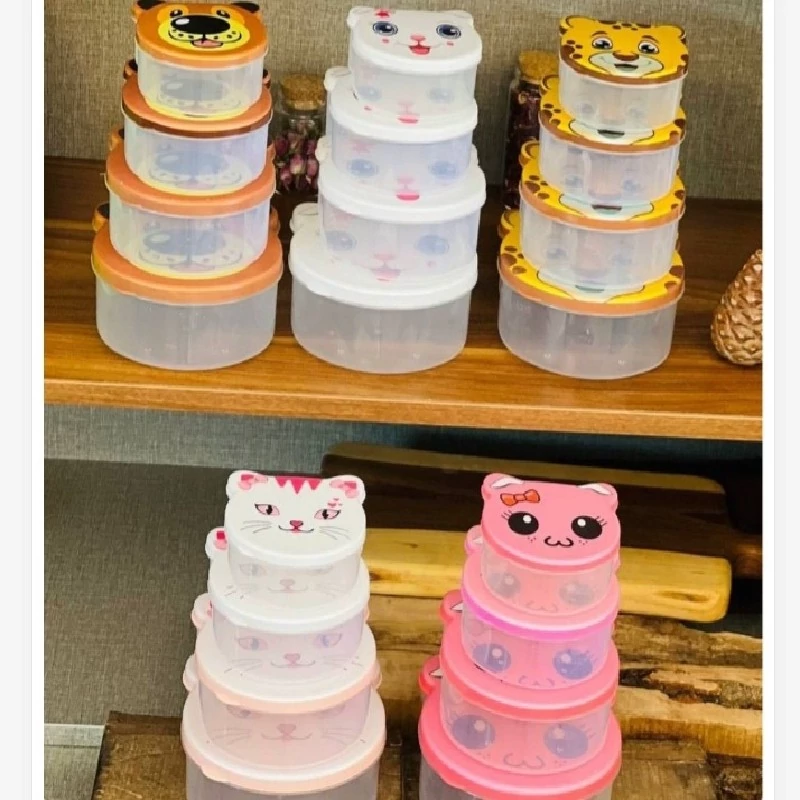 📌ظروف 4 تکه حیوانات 📏سایر تقریبی هر ظرف 11*131️⃣10*112️⃣10*93️⃣89 *9 4️⃣ 🌈طرحبندی 🔸ساخت 🇮🇷 ❇️ جنس پلاستیک