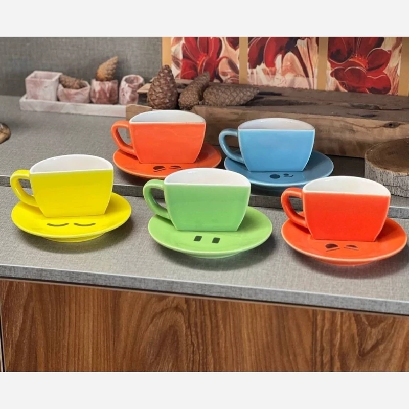 📌ست فنجان نعلبکی طرح لبخند سرامیکی 📏دو تکه 🌈رنگبندی 🔸️ساخت 🇨🇳 ❇️جنس سرامیک