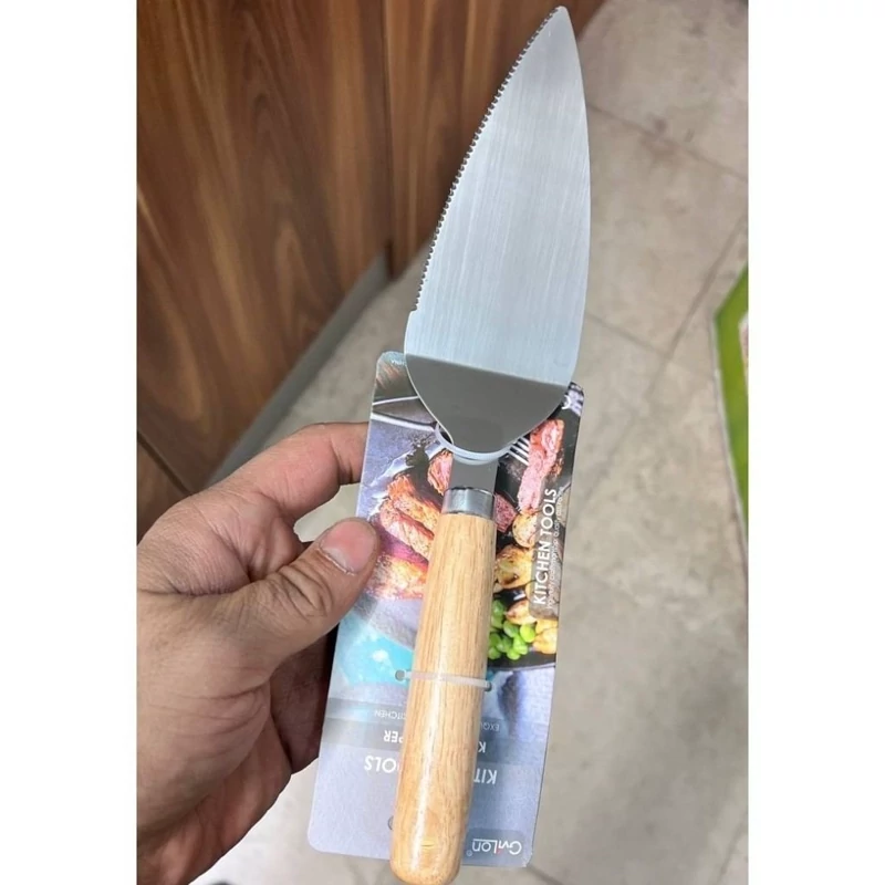 📌کاردک برش کیک و پیتزا دسته چوبی 📏سایز 24 سانت 🌈رنگبندی 🔸ساخت🇨🇳 ❇️ جنس استیل-چوب