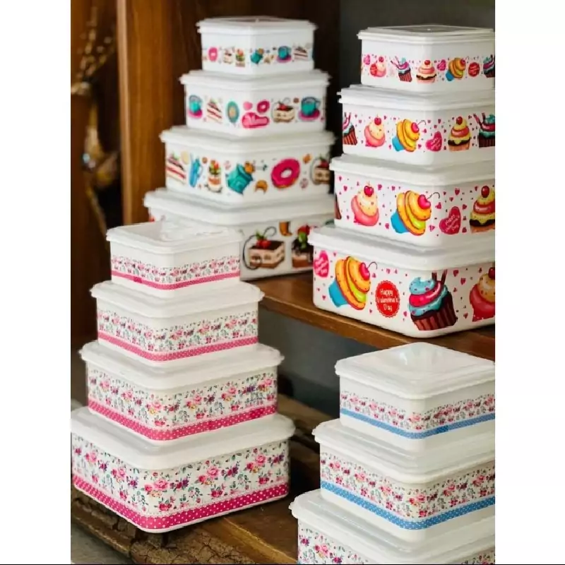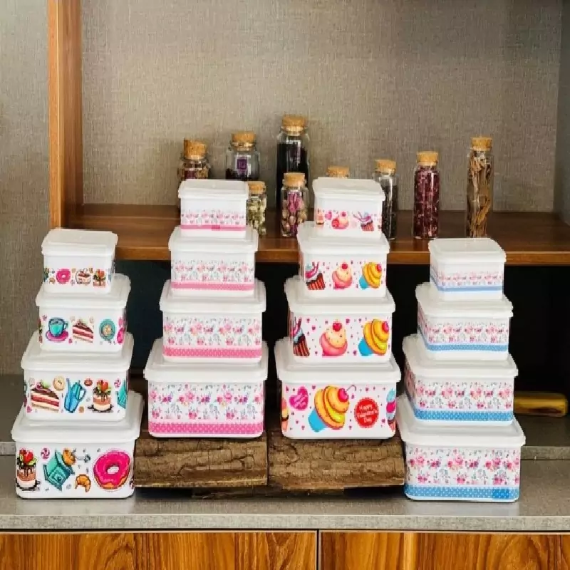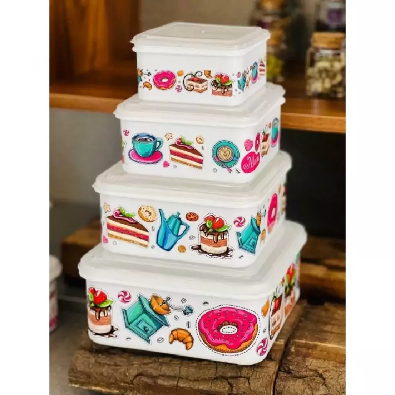ظروف چهارتایی رادیانت چهارگوش ابعاد ۱۰،۱۲،۱۵،۱۷ رنگبندی و طرح بندی ساخت ایران جنس پلاستیک