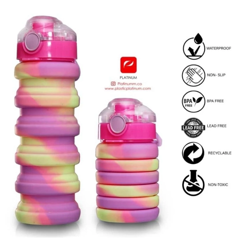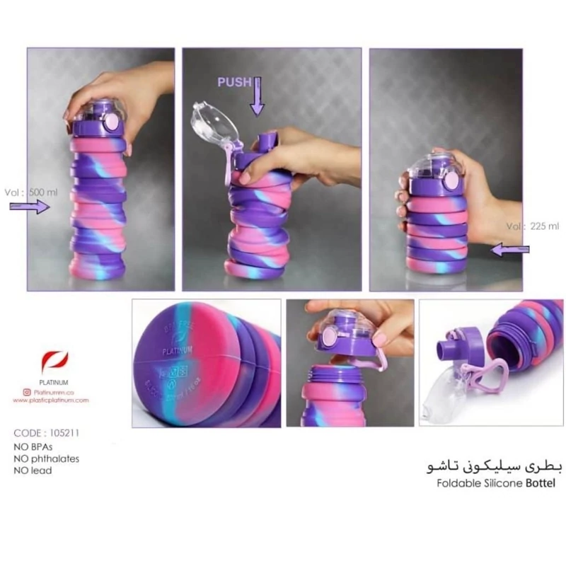 📌قمقمه سیلیکونی تاشو پلاتینیوم 📏ظرفیت 550 میلی لیتر سایز باز 24 بسته 13.5 سانتیمتر وزن 206 گرم 🌈رنگبندی تک جعبه 🔸️ساخت 🇮🇷 ❇️جنس سیلیکون مرغوب