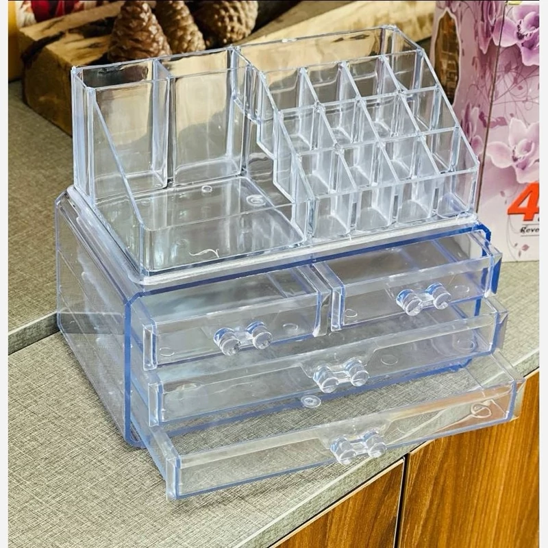 📌باکس آرایشی چهار کشو 🌈تک رنگ شفاف 🔸️ساخت 🇮🇷 ❇️جنس اکرولیک