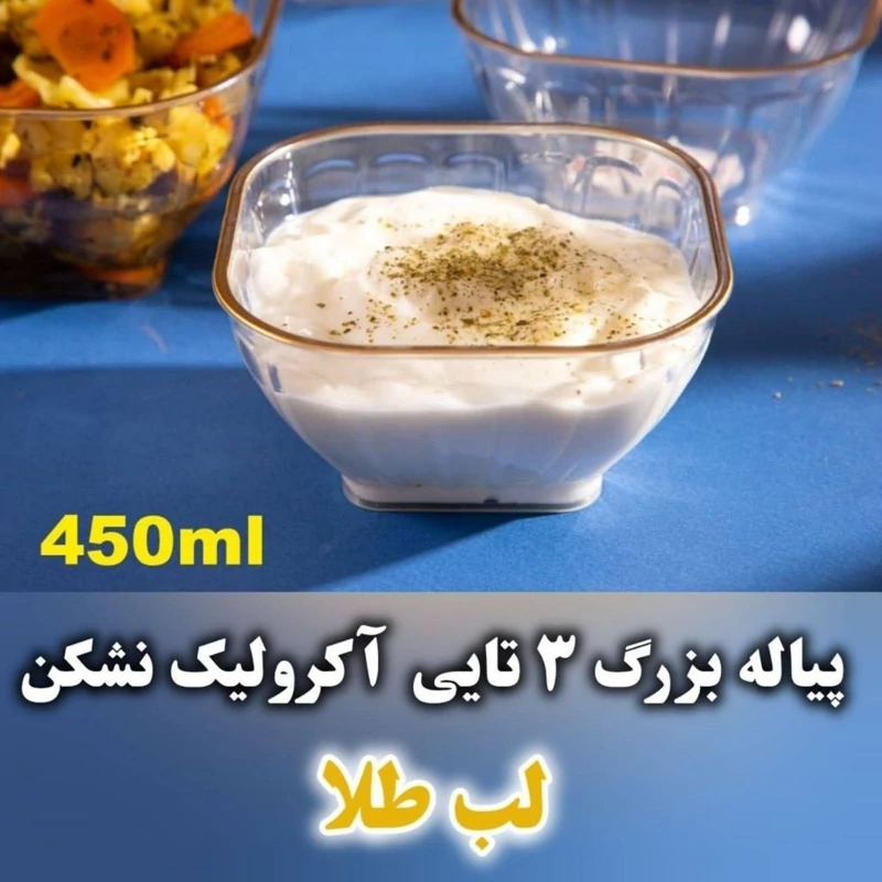 📌پیاله 3 عددی اکرولیک لب طلایی 📏ظرفیت هر پیاله 450 سی سی 🌈تک رنگ 🔸️ساخت 🇨🇳 ❇️جنس اکرولیک نشکن