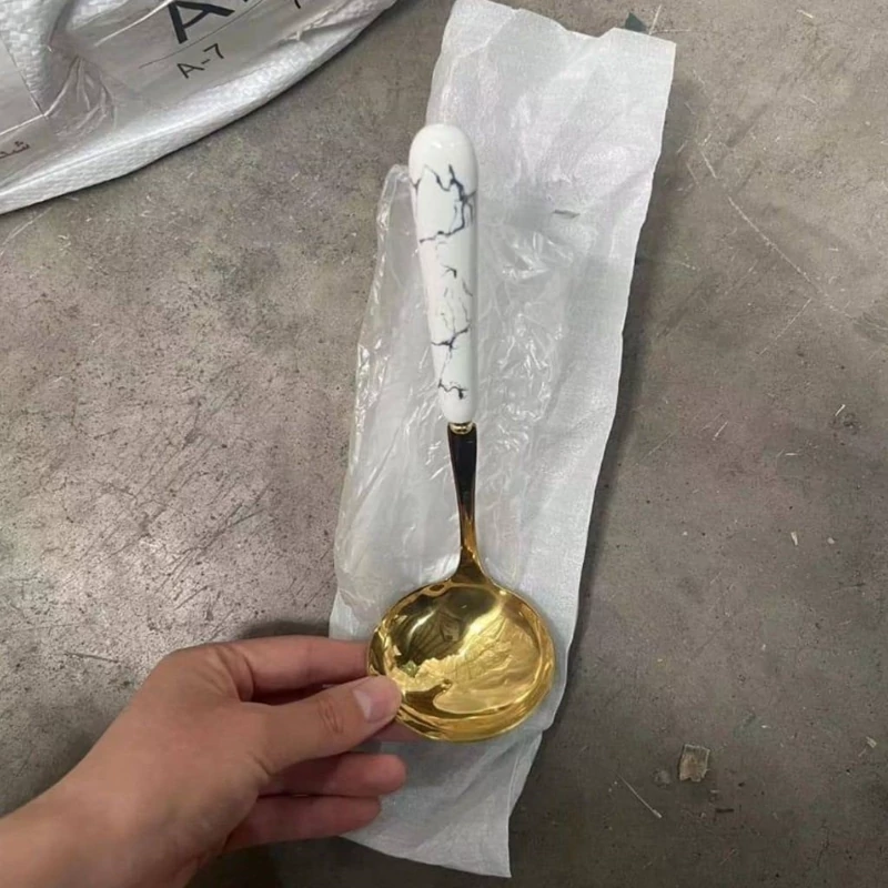 📌ملاقه طلایی ماربل سرامیکی 🌈تک رنگ 🔸️ساخت 🇨🇳 ❇️جنس سرامیک-استیل