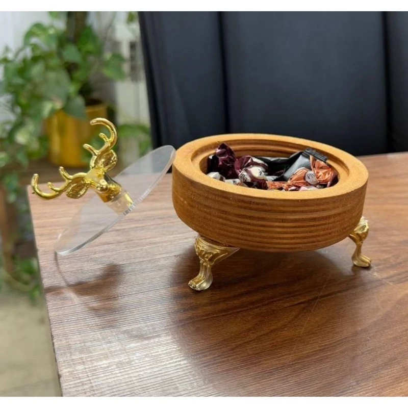 📌قندان چوبی پایه دار گرد پلی وود 🌈تک رنگ درب طلقی 🔸️ساخت 🇮🇷 ❇️جنس چوب پلی وود
