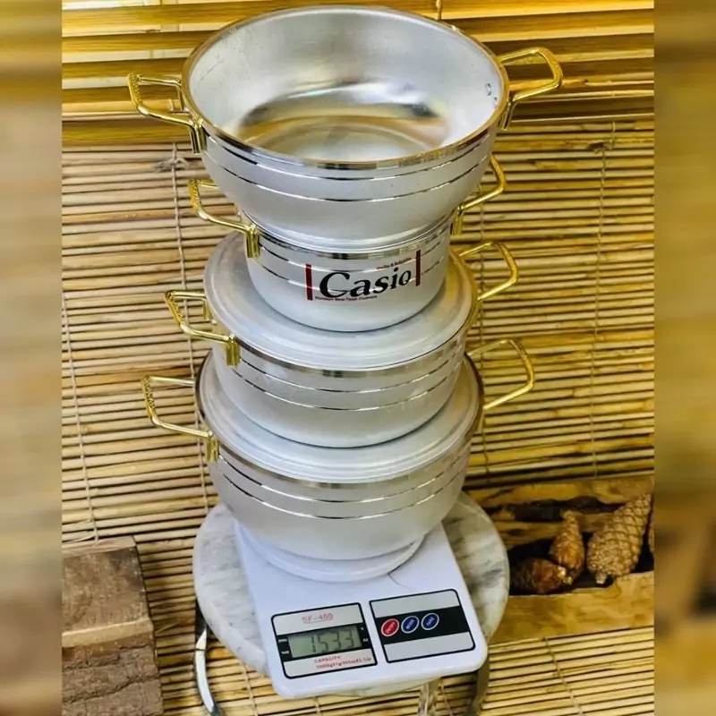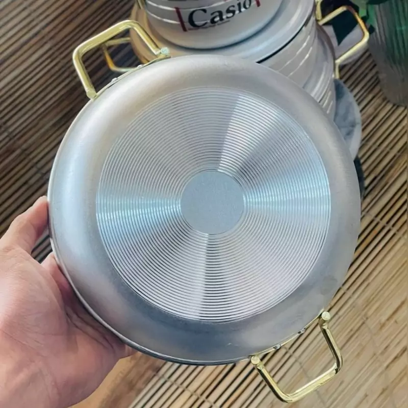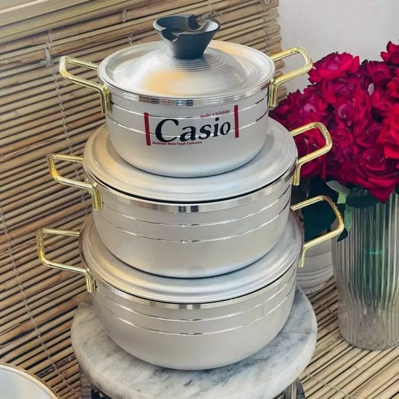📌سرویس قابلمه کاسیو 3 تایی دسته طلایی به همراه تابه