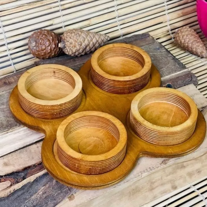 📌چهار پیاله لونه زنبوری گرد 📏سایز زیره 24 در 24 پیاله 9 سانتیمتر 🌈تک رنگ 🔸ساخت🇮🇷 ❇️ جنس چوب