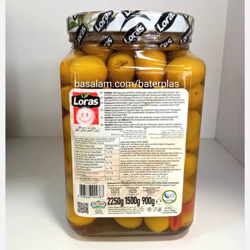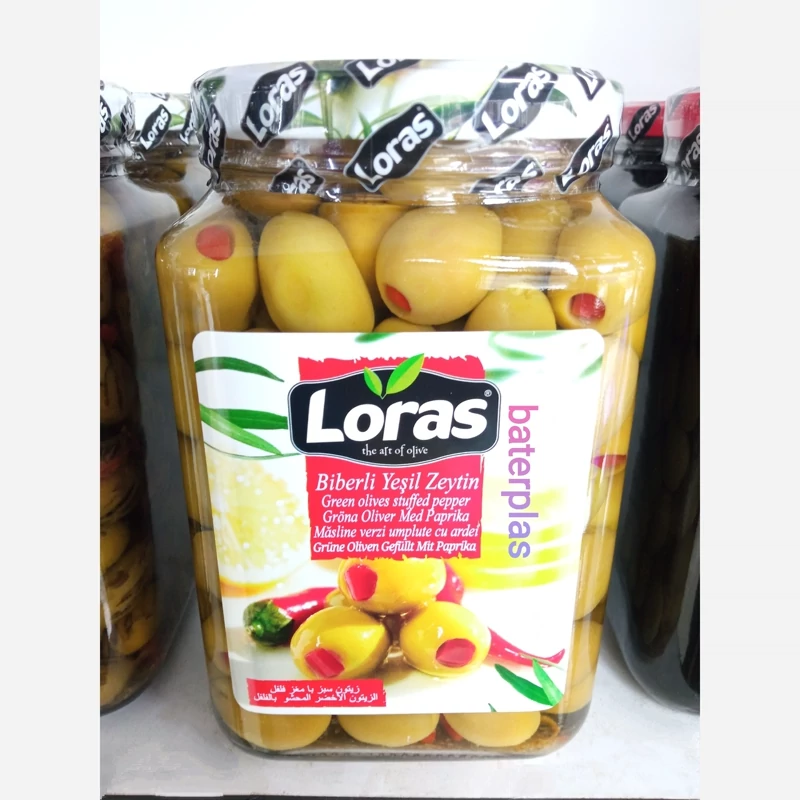 زیتون سبز مغز فلفلی لوراس 900گرم خالص ترکیه