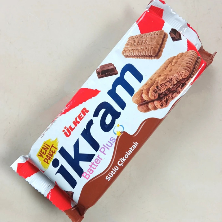 بیسکوییت کاکائویی با مغز کرم شکلات شیری ۸۴گرم ایکرام اولکر Ulker Ikram از محصولات با کیفیت این برند نامدار کشور ترکیه است.