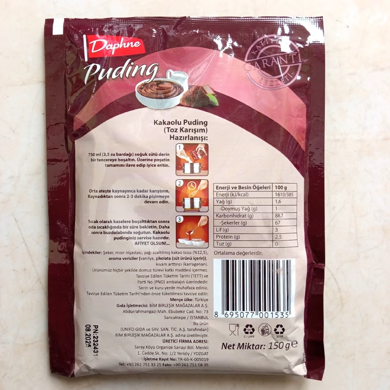 پودینگ کاکائویی دافنه (Daphne )ترکیه 150 گرمی